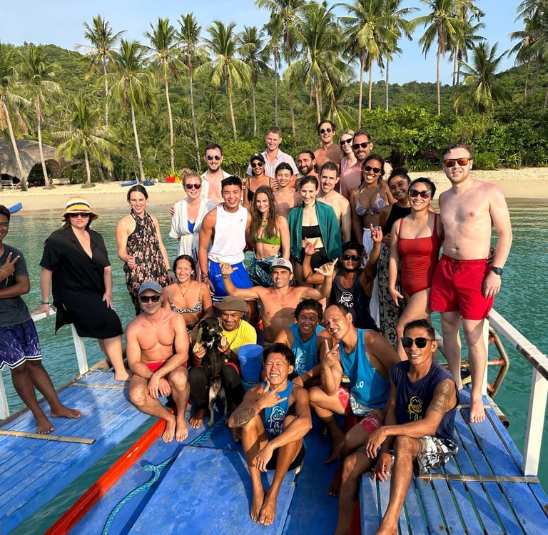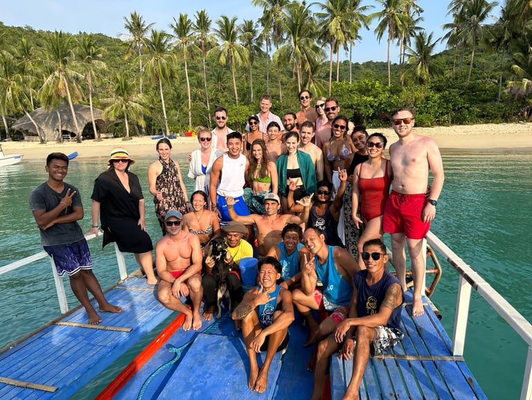 The TAO Experience is a 3- or 5-day tour from Coron to El Nido (or vice versa), island-hopping with a group of locals and travelers. You sleep at different island basecamps along the way. We did the three-day tour, which included snorkeling at deserted islands, stops at lagoons, reefs, and beaches, overnight stays at basecamps, fresh seafood, outdoor showers, and activities with locals. It was a true WOW experience — real island life, and I loved every second.