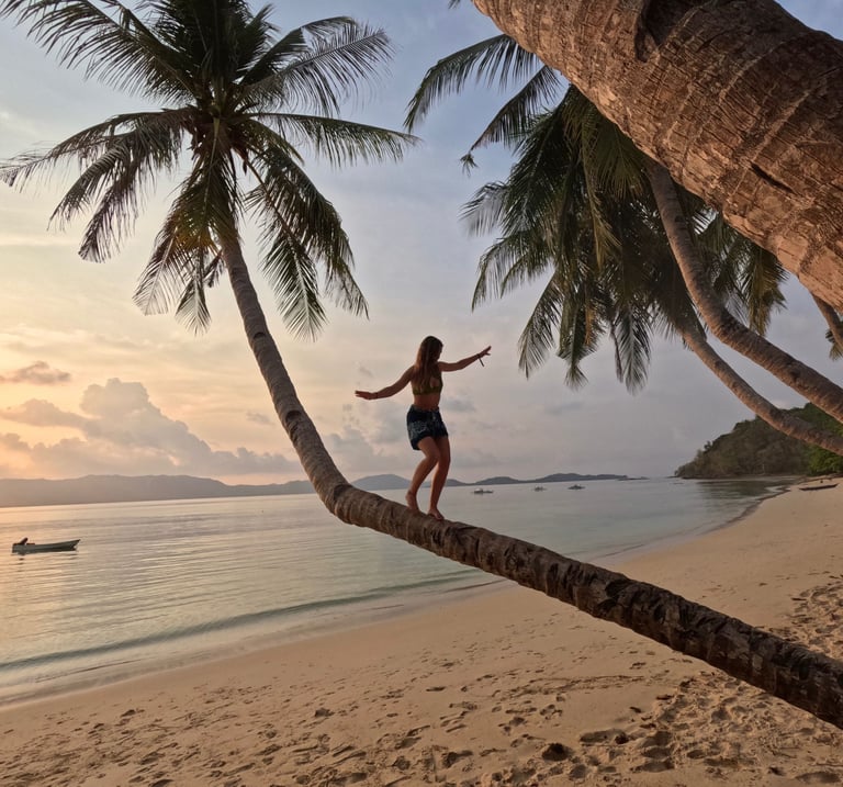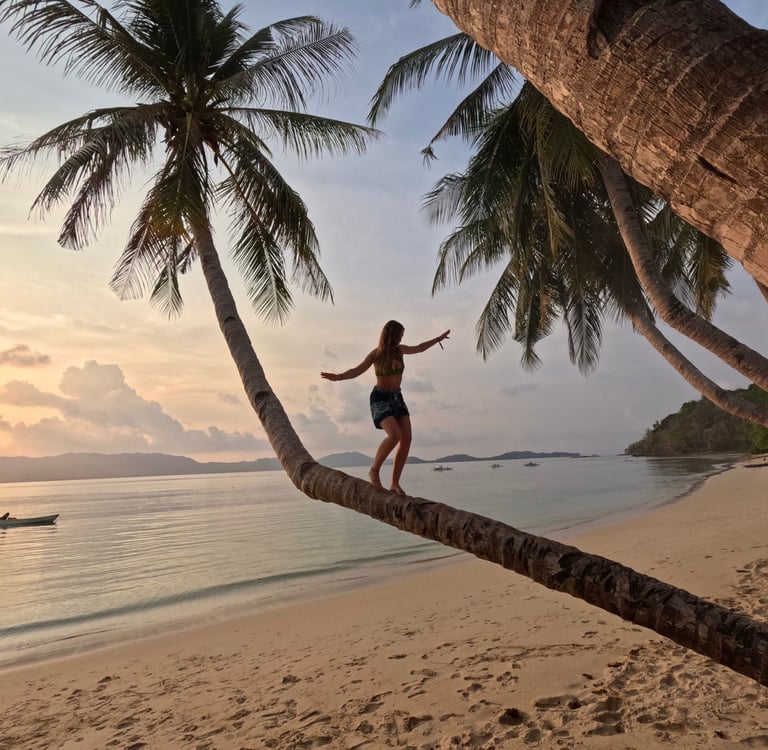 We also climbed Taraw Cliff. It’s not for everyone and requires caution, but the sunrise view was absolutely worth it. I truly felt on top of the world. To end our El Nido experience, we kayaked to nearby islands and small beaches, returning at sunset — I mean, is there anything better?